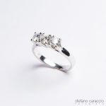 Non avendo idee a riguardo, cominciai a chiedere ai miei amici e la maggior parte di loro mi consigliò un certo Domenico Iezzi, orafo incastonatore di Spoltore. Lo contattai e lui mi invitò nel suo laboratorio. Mi sono subito trovato in empatia parlando con lui, ha voluto ascoltare la mia storia per consigliarmi sul tipo di regalo da fare. Ero indeciso fra un anello trilogy e una veretta a 5 pietre, ma alla fine ho scelto il trilogy perché mi ha affascinato la spiegazione che Domenico mi ha dato riguardo alla simbologia di questo anello, passato, presente e futuro.