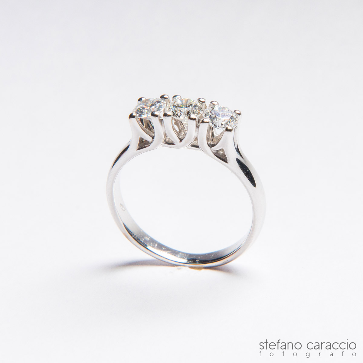 Non avendo idee a riguardo, cominciai a chiedere ai miei amici e la maggior parte di loro mi consigliò un certo Domenico Iezzi, orafo incastonatore di Spoltore. Lo contattai e lui mi invitò nel suo laboratorio. Mi sono subito trovato in empatia parlando con lui, ha voluto ascoltare la mia storia per consigliarmi sul tipo di regalo da fare. Ero indeciso fra un anello trilogy e una veretta a 5 pietre, ma alla fine ho scelto il trilogy perché mi ha affascinato la spiegazione che Domenico mi ha dato riguardo alla simbologia di questo anello, passato, presente e futuro.